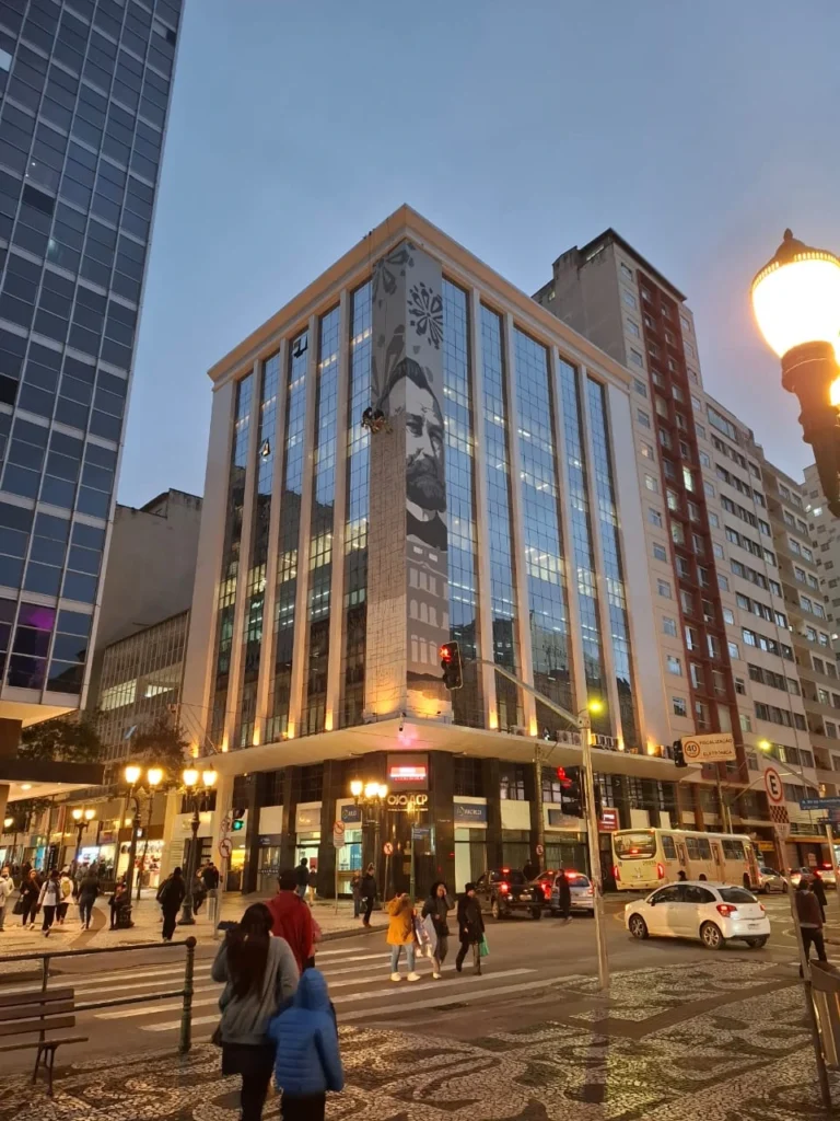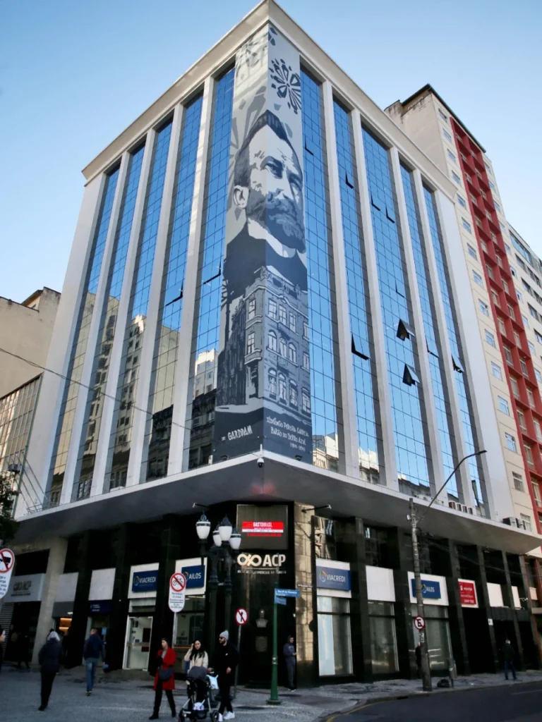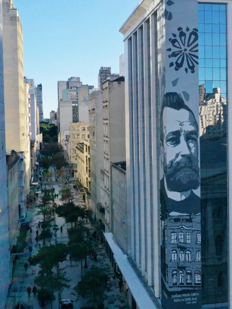 Localizado na Rua Xv de Novembro 621 e Presidente Faria 101, obra de 30 metros, A obra é assinada pelo muralista e grafiteiro curitibano Fernando Ferlim (Gardpam) e traz elementos paranaenses em preto e branco, como a araucária e a rosácea, dialogando com o calçadão da Rua XV e harmonizando com o estilo retrô dos edifícios vizinhos, como o da UFPR e o dos Correios